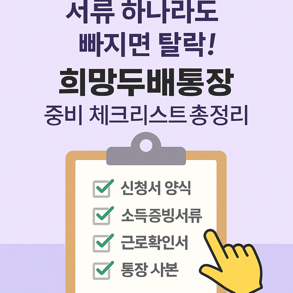 희망두배통장 신청 시 단 한 장의 서류 누락만으로도 심사 제외 또는 탈락될 수 있습니다. 특히 제출 기한 내 보완하지 못하면 자동 접수 취소 처리되는 경우도 있으므로 주의가 필요합니다.